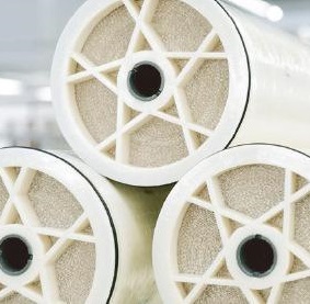 通常,商業(yè)化制造反滲透膜元件的材質(zhì)有兩種,一種是醋酸纖維素(CA)、三醋酯纖維(CTA)或二者的混合材料,另外一種是聚酰胺(PA)。醋酸纖維素是一種由天然纖維發(fā)展而來的的人工合成的聚合物,一般采用纖維素經(jīng)酯化生成三醋酸纖維,再經(jīng)二次水解成混合醋酸纖維。聚酰胺復(fù)合膜的分離層為高交聯(lián)度的全芳香聚酰胺,由苯三酰氯和苯二胺聚合而成,具有極高的化學(xué)物理穩(wěn)定性和耐久性。