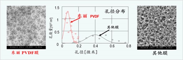 東麗的PVDF膜表面上孔的直徑小而均勻,相對于其他廠商的膜而言,東麗的PVDF膜不僅可生產(chǎn)高質(zhì)量的產(chǎn)水,還具有卓越的透水性能,并且可以防止膜孔的污堵。